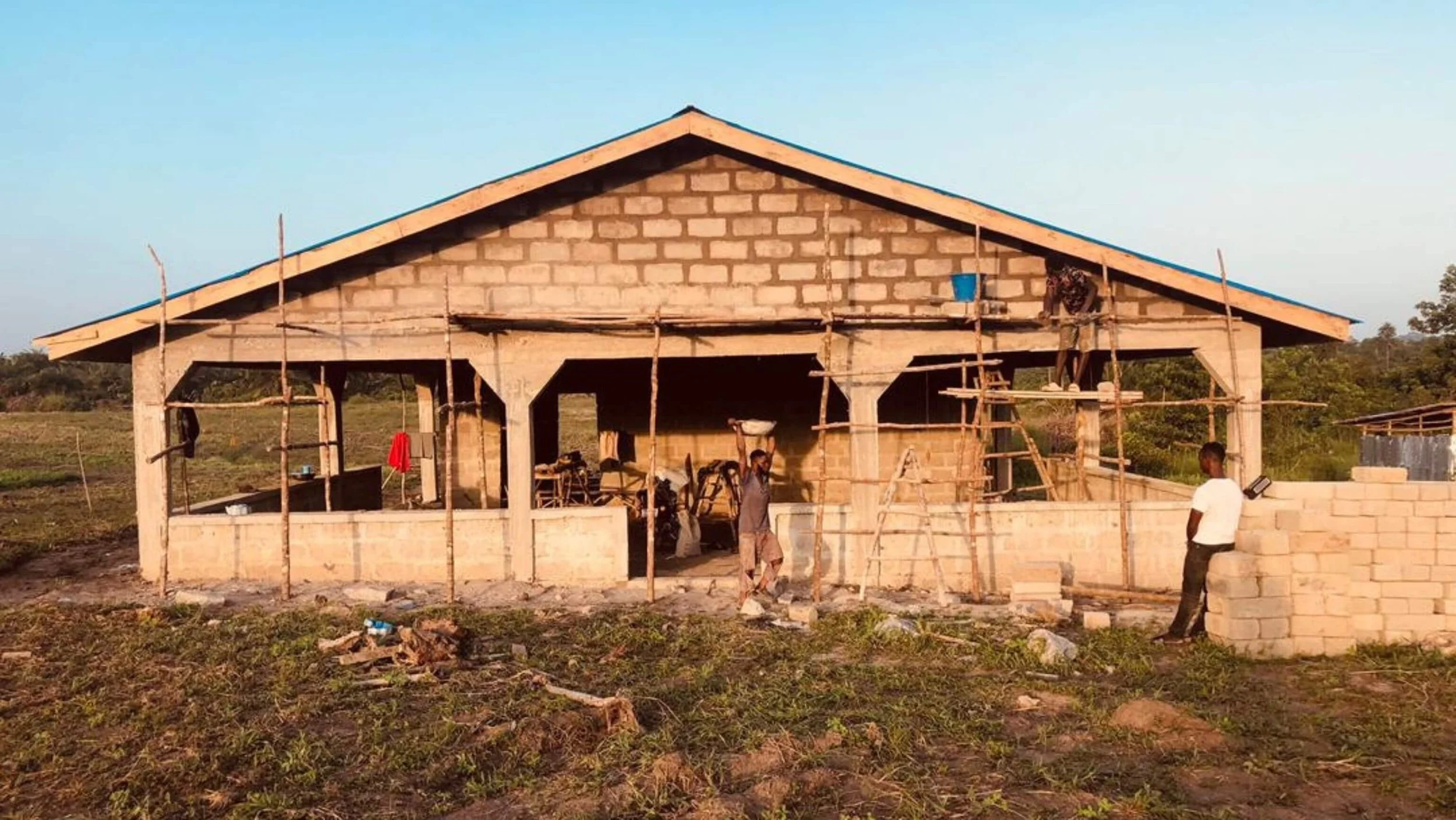 The fifth order of business was creating a centralized storage facility to house the company tools, farm inputs, and assets including motorbikes. We wanted this facility to double as a classroom area since we are an educational non-profit. Adding a space for classes would easily facilitate new students once GTGR had the capacity to take new students in. In June/July 2024, GTGR got to work in designing this new storage/classroom facility. A month was spent conversing with local contractors to find the right price and quality of craftsmanship. In August 2024, construction started for the 2,000+ square foot storage facility, which became known as the Harvest House. The facility holds one large room for agriculture tools, inputs, and general storage. One room is designated as the garage, where 1 truck and 3 motorbikes can comfortably fit. The final space is partially indoor and partially outdoor to encourage the natural breeze to regulate the temperature. This space is designated for the classroom. It's a large area where 10 tables can be set up in front of a whiteboard installed on the wall.