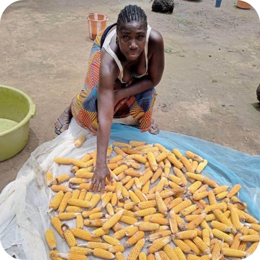 The FBO women harvest groundnuts and maize from the RHCI leased land and their 2-acre parcel of land. (40/25/35 split this time, before it’s usually 50/25/25, mention this earlier)